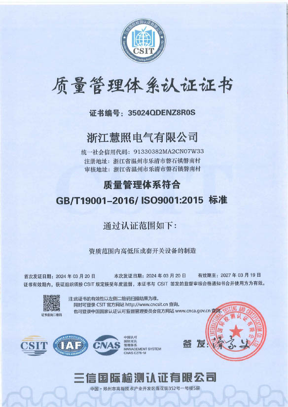 質(zhì)量管理體系認(rèn)證證書